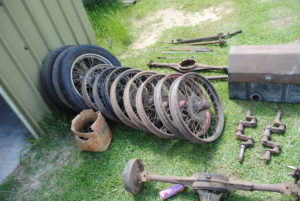 There are over 100 photos of these parts on a memory stick which can be sourced from me.  In this collection is included engine blocks and parts; steering columns and steering box parts; wire wheels; cycle guards; gearboxes; electrical parts, front ends and lots more.