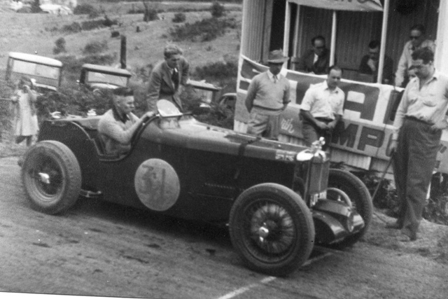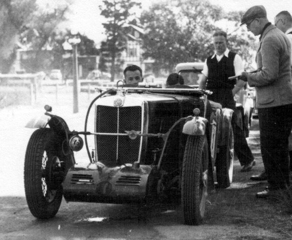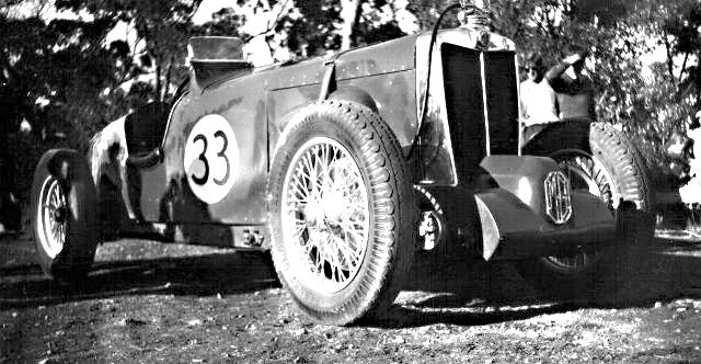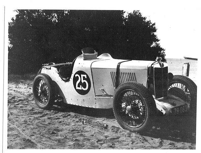 This is J3 chassis 3763. Before being exported to Australia this car was modified at the factory with bigger brakes and an outside exhaust, consequently it was believed for many years that this car was a factory J4. This could be at Phillip Island with George Martin at the wheel. George was one of the importers for Britannia Motors who sometimes entered their own MG teams in Victorian races. I also have a rear view showing the registration number 87.338 which was cancelled in August 1934.- Magilton Collection