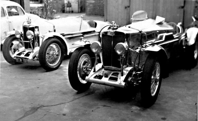 Here are the two Australian NEs together in Melbourne in 1964, having both just been restored with much of the work done by Rod Robertson who used to race a modified TB. Chassis 0520 is the white car. This was driven by George Eyston in the 1934 Ulster T.T. and later became part of the Bellevue Garages team. Both NEs were imported by John Sherwood in the late 1930s and both were driven by John Barraclough in major events. Fred Gray owned 0520 when this photo was taken and later Lance Dixon would have it on display in his Doncaster showrooms. Now part of the Peter Briggs collection W.A. Chassis 0516 is believed to have been a practice car for the 1934 Ulster T.T. and before Bill Lockington acquired the car it was painted blue and had a Talbot engine. She was restored with an aluminium body and now resides in Germany. – Magilton Collection.