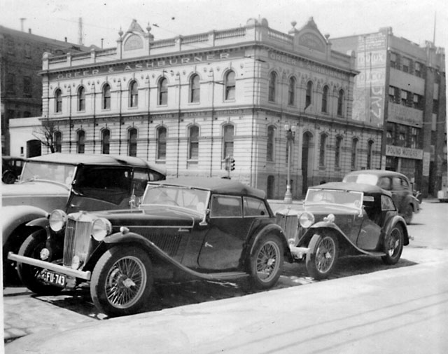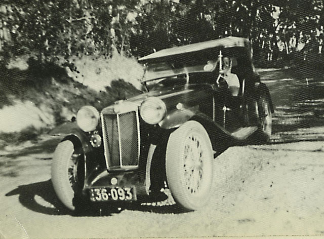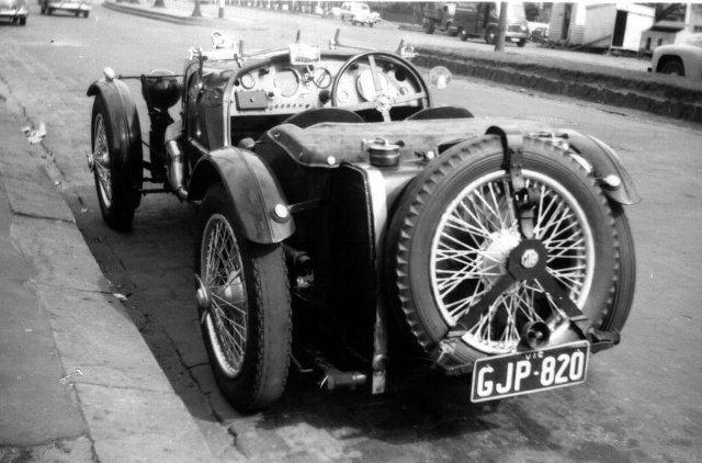 Funny how you don’t see K3s parked in the streets these days! This is K3 chassis # K3752 which was used to reconnoitre the course of the 1933 Italian Mille Miglia for the MG team. She came to Australia in 1949 and was bought by young John Sawyer in 1952. John was apprenticed to Otto Stone (K3016) and after fitting a drivers door, used the car on a daily basis. Now owned by Jim Nilsson. Registration numbers include: JB.1269 (UK), BJ.371 ’49 and GJP.820 ’55. For a detailed history of all the Australian K3s as well as other notable MGs, see ‘Historic Racing Cars in Australia’ By John Blanden. – John Passmore Collection