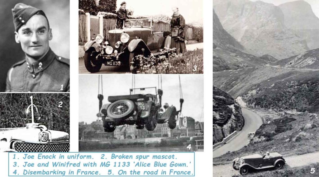 In 1951, he and his wife Winifred retraced his war-time escape route in France and he was able to thank over 100 individual people who had helped him on his journey to freedom back in those dark days.  What is even more remarkable is that he used MG 1133 for the trip.  The disembarkation of the M.G.18/80 on the dockside in France was recorded by Joe and the small photograph was kept safely in the family album.  Sadly, there is no surviving written account of that emotional trip, the people he was reunited with, or of MG 1133 on the road on this 2000 kilometre round trip.