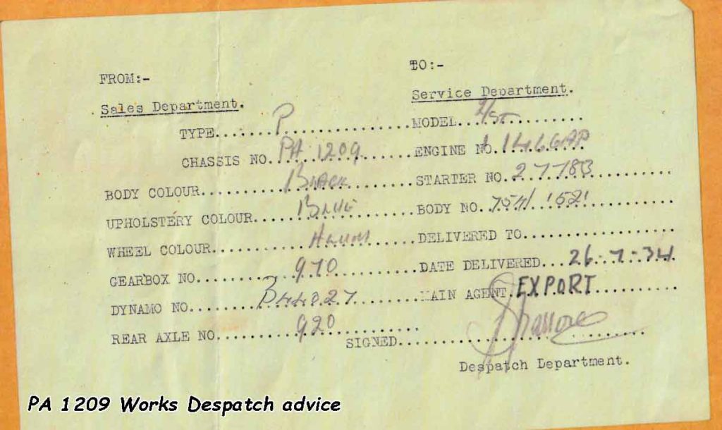 -Information: Built at Abingdon as a two-seat roadster and dispatched from the export dept. 26/7/34 to South Africa.