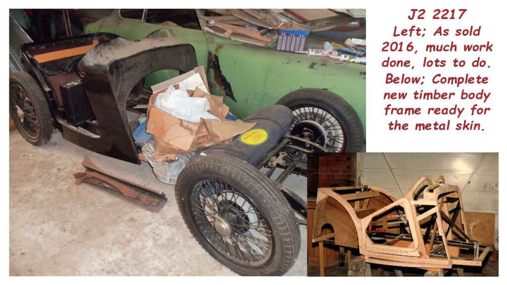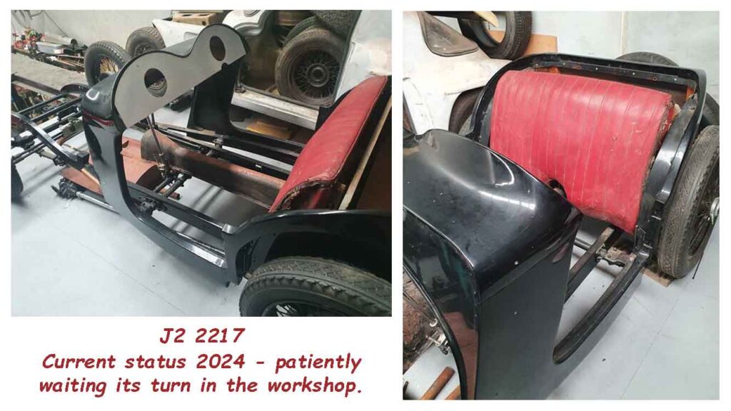 Stuart Andrews was able to purchase the body & chassis and the engine separately in 2022, reuniting chassis 2217 and engine 2993AJ and is working toward completing the restoration over the next few years.