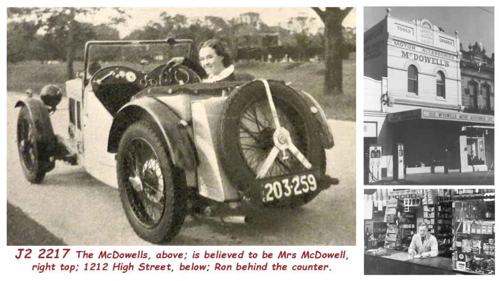 In Australia, the car was sold by ‘Select Used Cars’, owned and operated by the famous local M.G. racer Les Murphy. The car was first registered as 203-259 to a Mr Ronald A. McDowell of Nathan Grove, Caulfield South, Victoria on 26 March 1935. Coincidentally, a few days after the sale, Murphy went on to win the 1935 Australian Grand Prix in a P-type on 1 April 1935. Mr Mc Dowell was a local business man who owned and operated an automotive spare parts business at 1212 High Street Armadale, the building now houses a jewellery store. He owned the car until 1945, after which it went through a succession of owners.